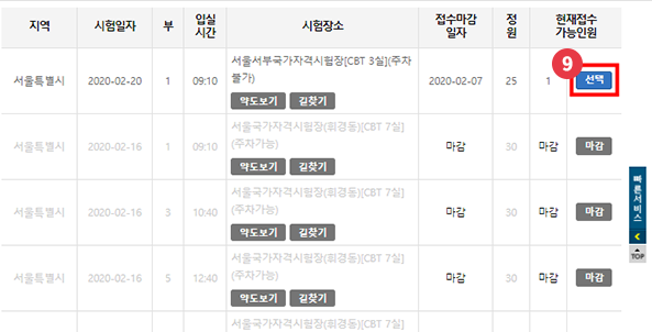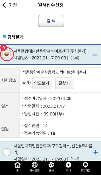 ‘시험검색’ 클릭해 회차 확인